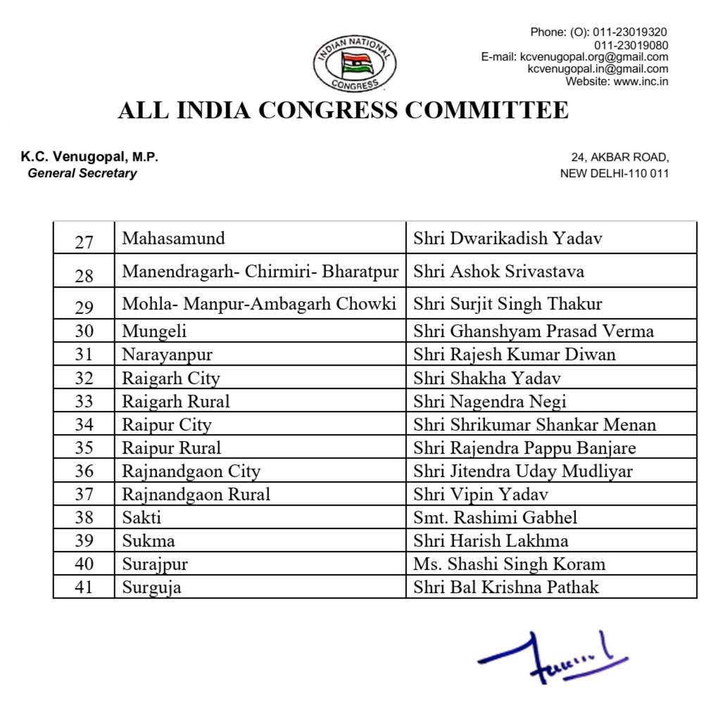 CG Big News : छत्तीसगढ़ में कांग्रेस ने जिलाध्यक्षों के नाम की घोषणा की, देखिए सूची…