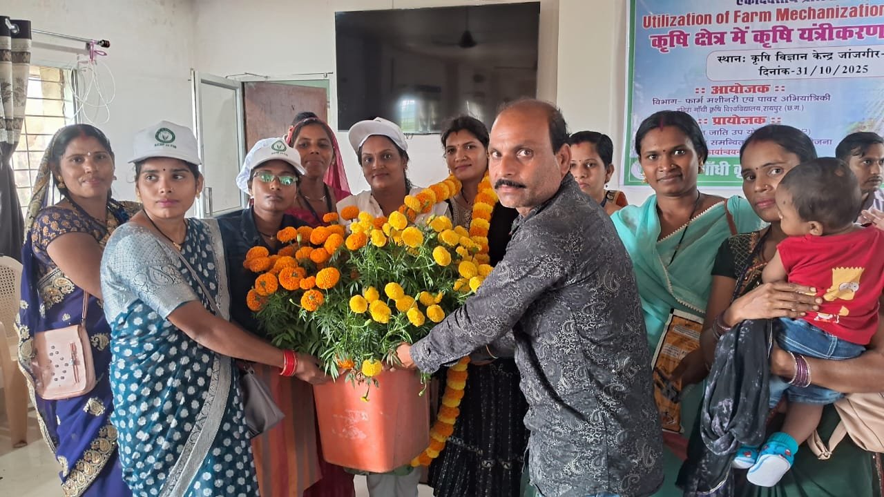 इस अवसर पर छत्तीसगढ़ राज्य आरसेटी के क़ृषि क्षेत्र के मास्टर ट्रेनर दीनदयाल यादव ने बताया कि जिले में क़ृषि व पशुपालन के क्षेत्र में काम कर रहीं बिहान की क़ृषि सखी और पशु सखी दीदियों को एसबीआई आरसेटी जांजगीर में संस्थान के डायरेक्टर लक्ष्मीनारायण सिंकू के मार्गदर्शन में जिला पंचायत के सीईओ गोकुल रावटे तथा बिहान के डीएमएम उपेंद्र कुमार दुबे, रेशम लाल नामदेव के सहयोग से क़ृषि व पशुपालन के साथ ही विभिन्न आजीविका गतिविधियों को लेकर आवासीय निःशुल्क प्रशिक्षण दी जा रहीं है. प्रशिक्षण के दौरान क़ृषि विज्ञान केंद्र, शासकीय रोपणी तथा वरिष्ठ पत्रकार कुंजबिहारी साहू किसान स्कूल बहेराडीह का भ्रमण भी कराई जाती है कार्यक्रम के दौरान रायगढ़ जिले के लैलूंगा ब्लॉक के कुड़केल गांव के प्रगतिशील किसान व गेंदा बाबा विद्याधर पटेल, नारायण गबेल ने ग्रामीण क्षेत्र में क़ृषि तथा पशुपालन को लेकर काम कर रहीं बिहान की दीदियों का गेंदा के विशाल गुलदस्ता और गेंदा के आकर्षक अजगर माला से सम्मान किया.