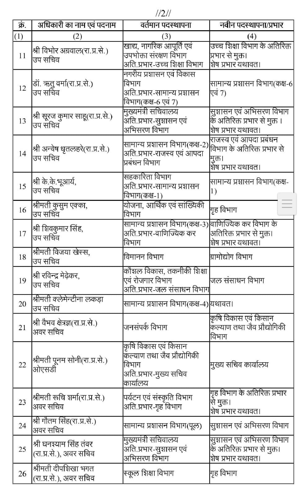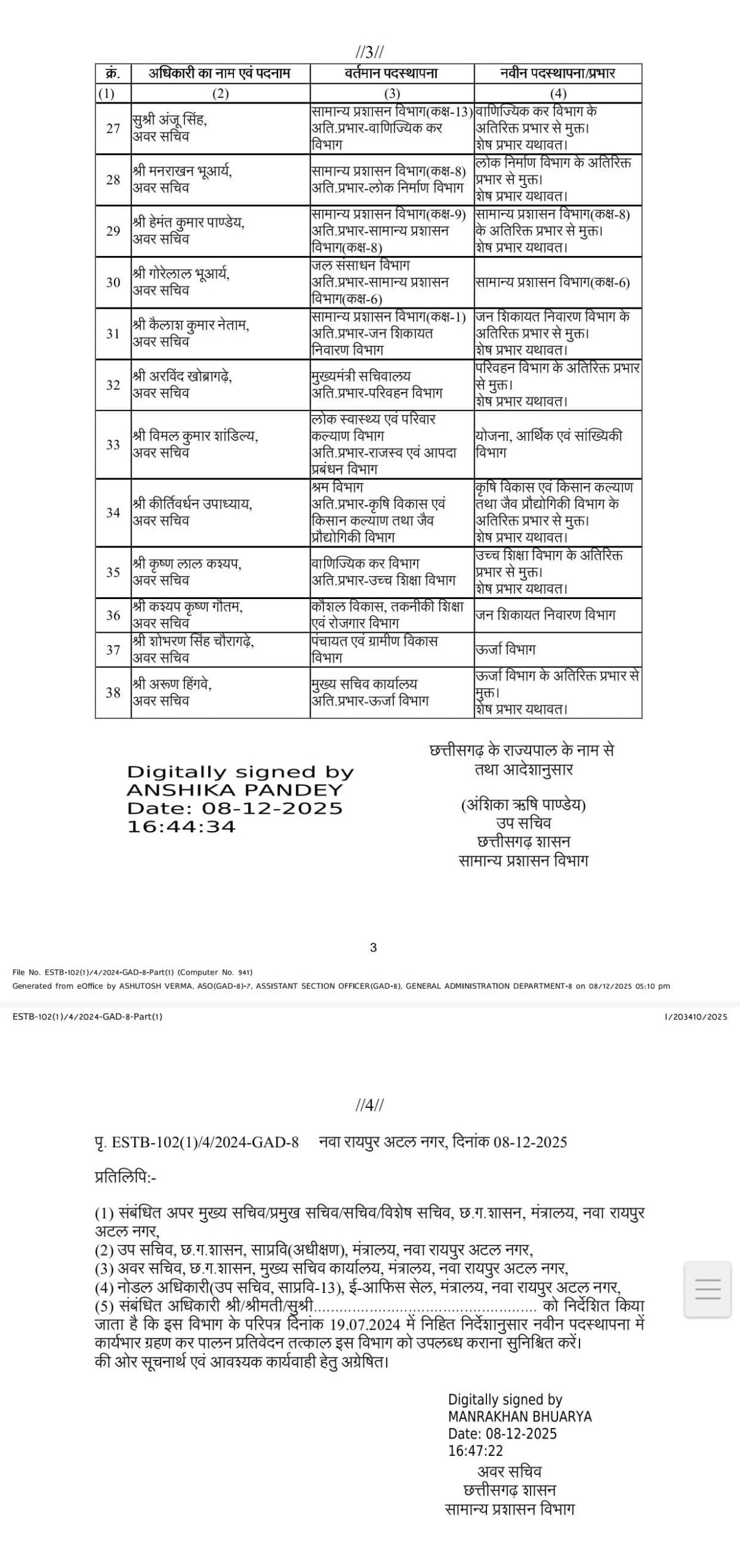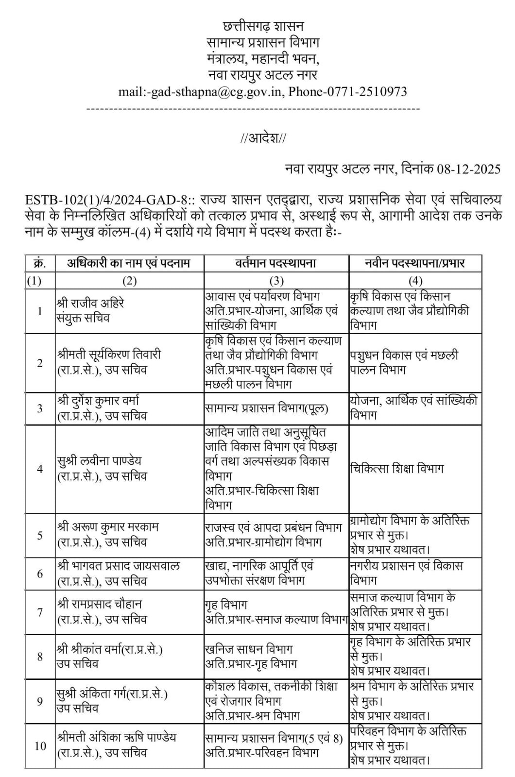 CG Big News : छत्तीसगढ़ की राज्य प्रशासनिक सेवा और सचिवालय सेवा के 38 अधिकारियों में फेरबदल, सामान्य प्रशासन विभाग के जारी किया आदेश, देखिए पूरी सूची…