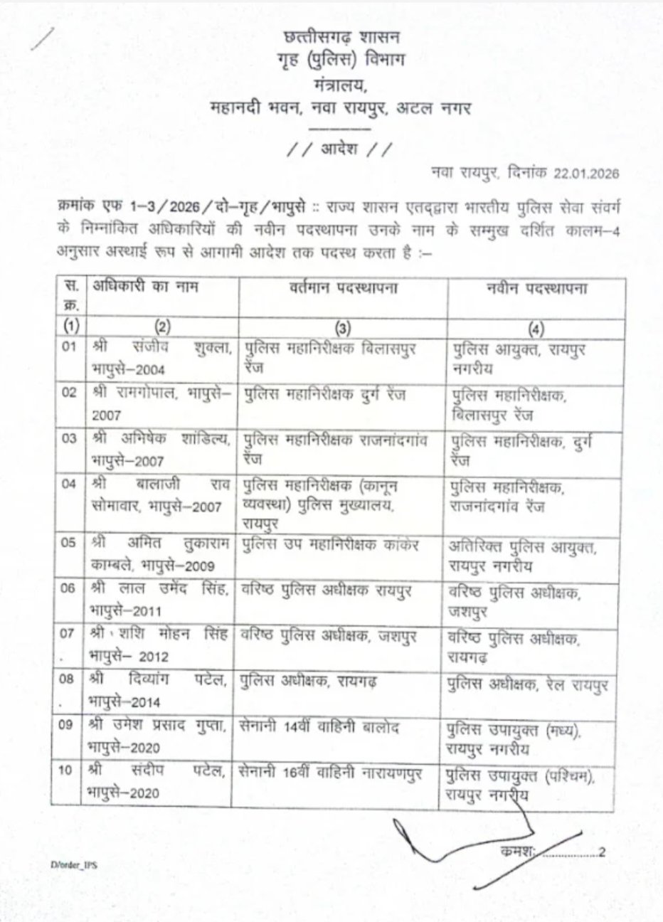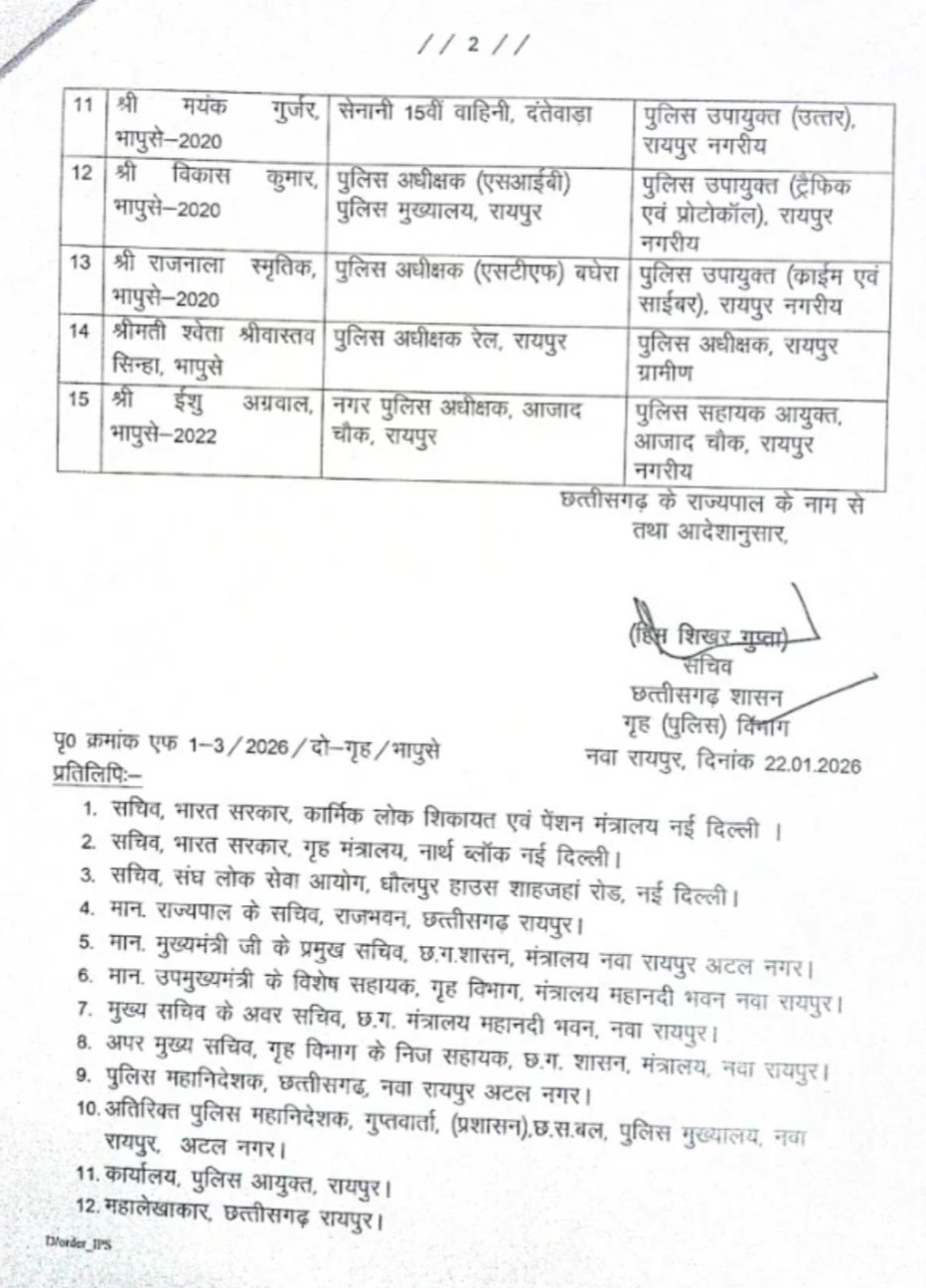 CG Big News : 15 IPS अफसरों के तबादले, कई जिलों के SS बदले गए, पुलिस विभाग के आदेश जारी किया, देखिए आदेश…
