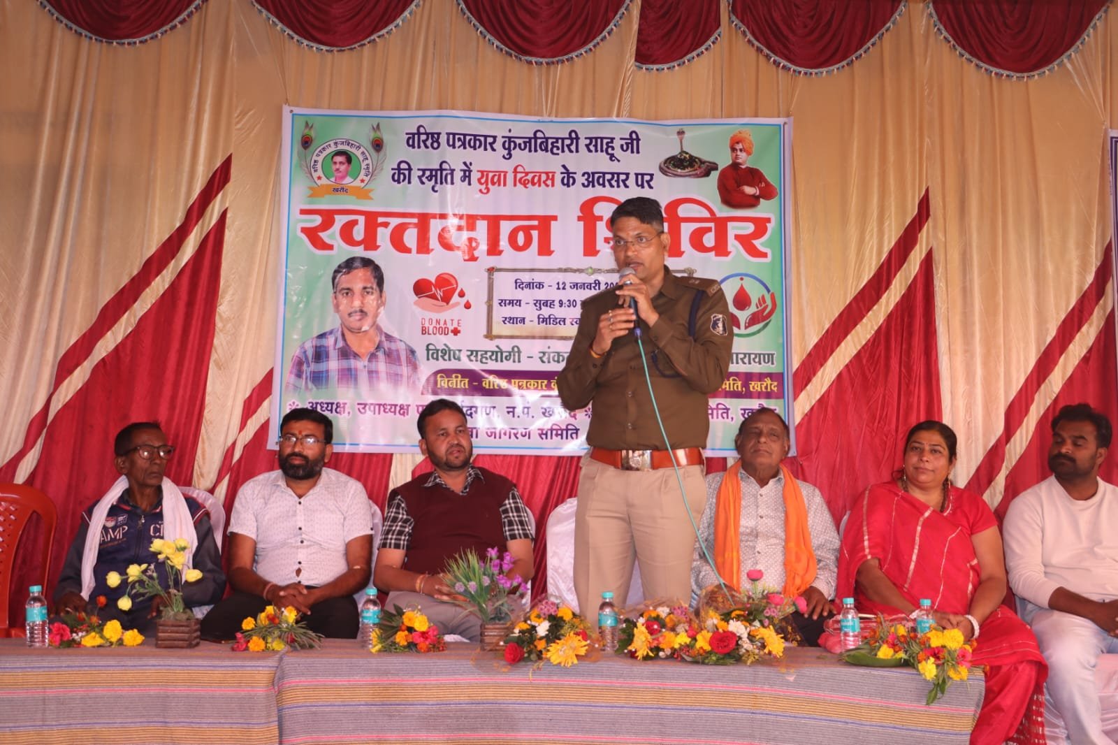 इस दौरान एडिशनल एसपी उमेश कश्यप ने कहा कि रक्तदान को महादान कहा जाता है और सबसे बड़ा पुण्य का कार्य रक्तदान है. खरौद के शिविर में युवाओं ने रक्तदान किया है और समाज को बड़ा संदेश दिया है. उन्होंने कहा कि रक्तदान से शरीर को लाभ होता है. ऐसे में युवाओं को रक्तदान करने हमेशा आगे रहना चाहिए. श्री कश्यप ने वरिष्ठ पत्रकार कुंजबिहारी साहू की स्मृति में आयोजित रक्तदान शिविर को लेकर कहा कि यही उन्हें सच्ची श्रद्धांजलि है. आज वे हमारे बीच नहीं है, लेकिन उनकी याद में यह पुनीत कार्य हो रहा है, यह अच्छी पहल है.