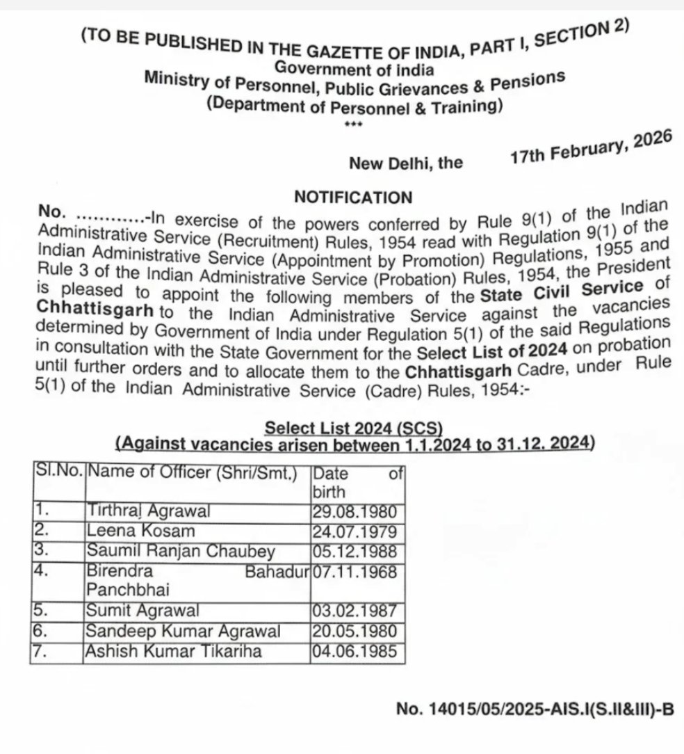 CG Big News : राज्य प्रशासनिक सेवा के 7 अफसरों को IAS अवार्ड, जारी हुआ आदेश… देखिए किन-किन अफसरों को मिला IAS अवार्ड…