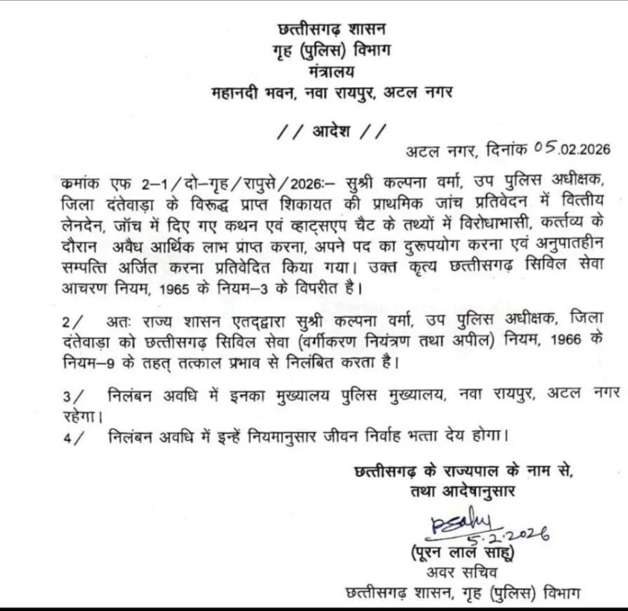 Raipur Big News : राज्य सरकार की बड़ी कर्रवाई, डीएसपी कल्पना वर्मा निलंबित…