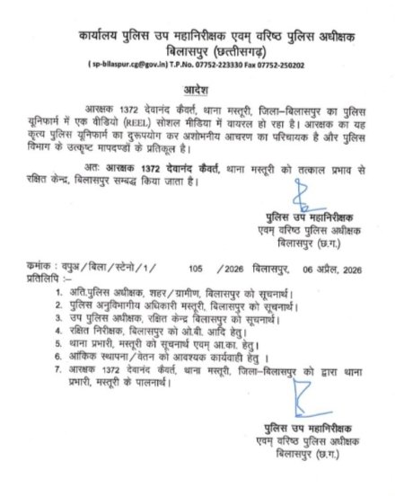 Bilaspur Constable Suspend : आरक्षक को सस्पेंड किया गया, SP ने की कार्रवाई…