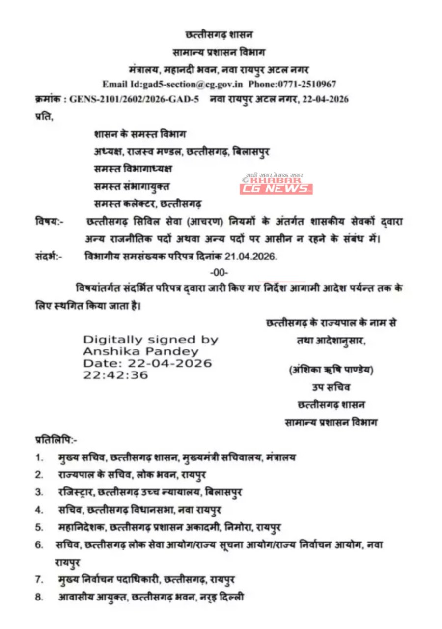 CG Big News : सरकार का यूटर्न, आदेश निरस्त, सरकारी कर्मियों पर सख्ती वाले आदेश फिलहाल लागू नहीं… देखिए क्या लिखा गया इस आदेश में…