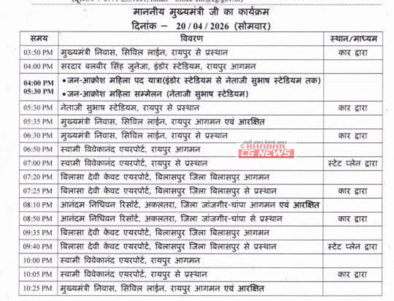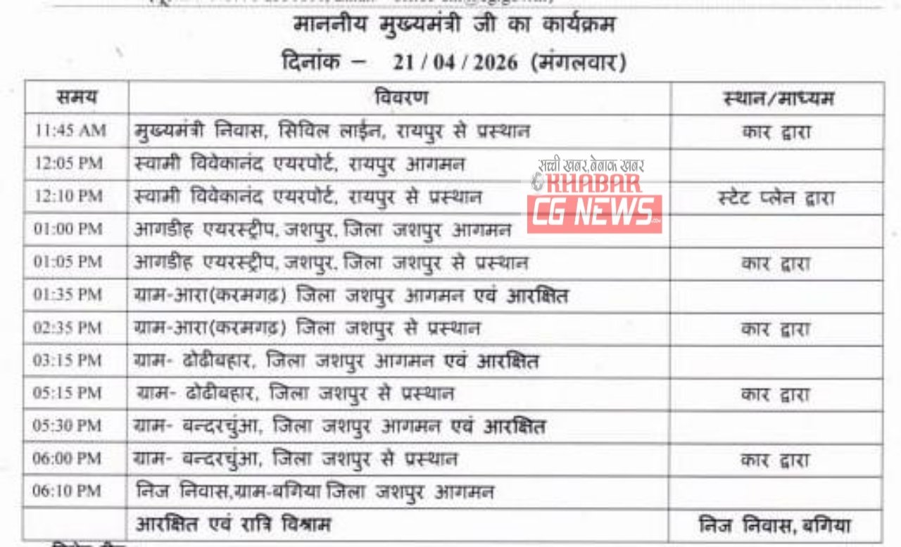CG News : CM विष्णुदेव साय का 20 और 21 अप्रेल को दौरा कार्यक्रम, जारी हुआ प्रोटोकॉल, देखिए पूरा शेड्यूल…