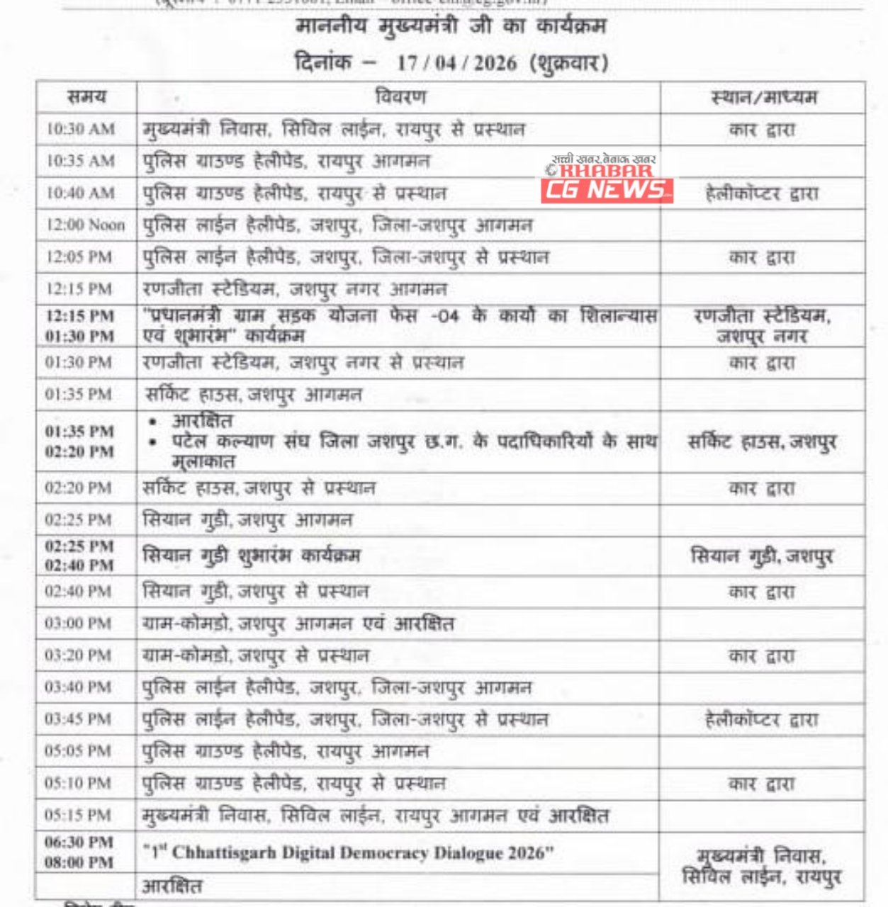 CG News : CM विष्णुदेव साय का 16 अप्रेल को दौरा कार्यक्रम, जारी हुआ प्रोटोकॉल...