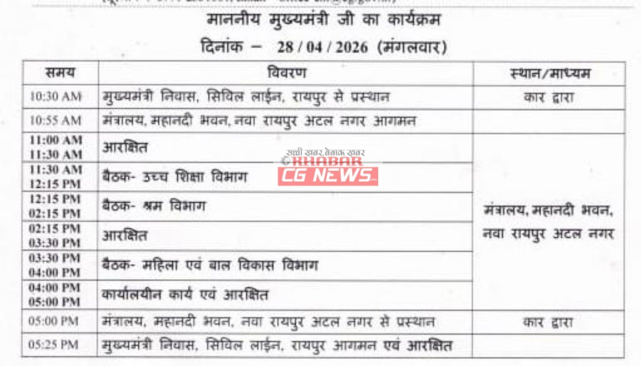 CG News : CM विष्णुदेव साय का 26 अप्रेल को दौरा कार्यक्रम, जारी हुआ प्रोटोकॉल...
