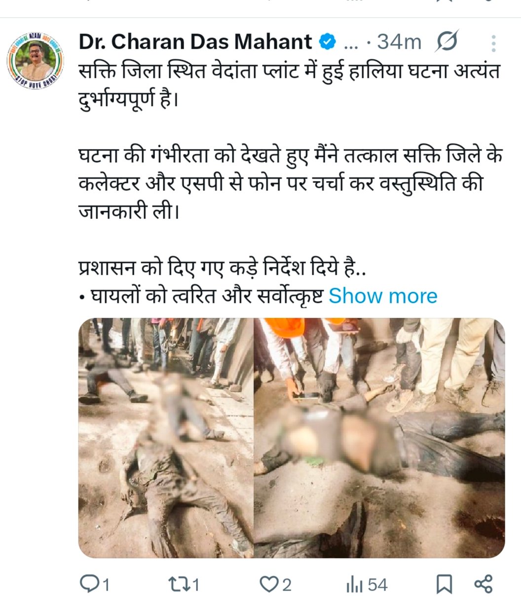 Sakti Big Update : अब तक रायगढ़ में 18 मजदूरों को ले लाया जा चुका, रायगढ़ में इलाज के दौरान 9 मजदूरों की हो चुकी मौत, 25 मजदूर गम्भीर रूप से झुलसे थे, नेता प्रतिपक्ष डॉ. महंत ने X पर लिखा…